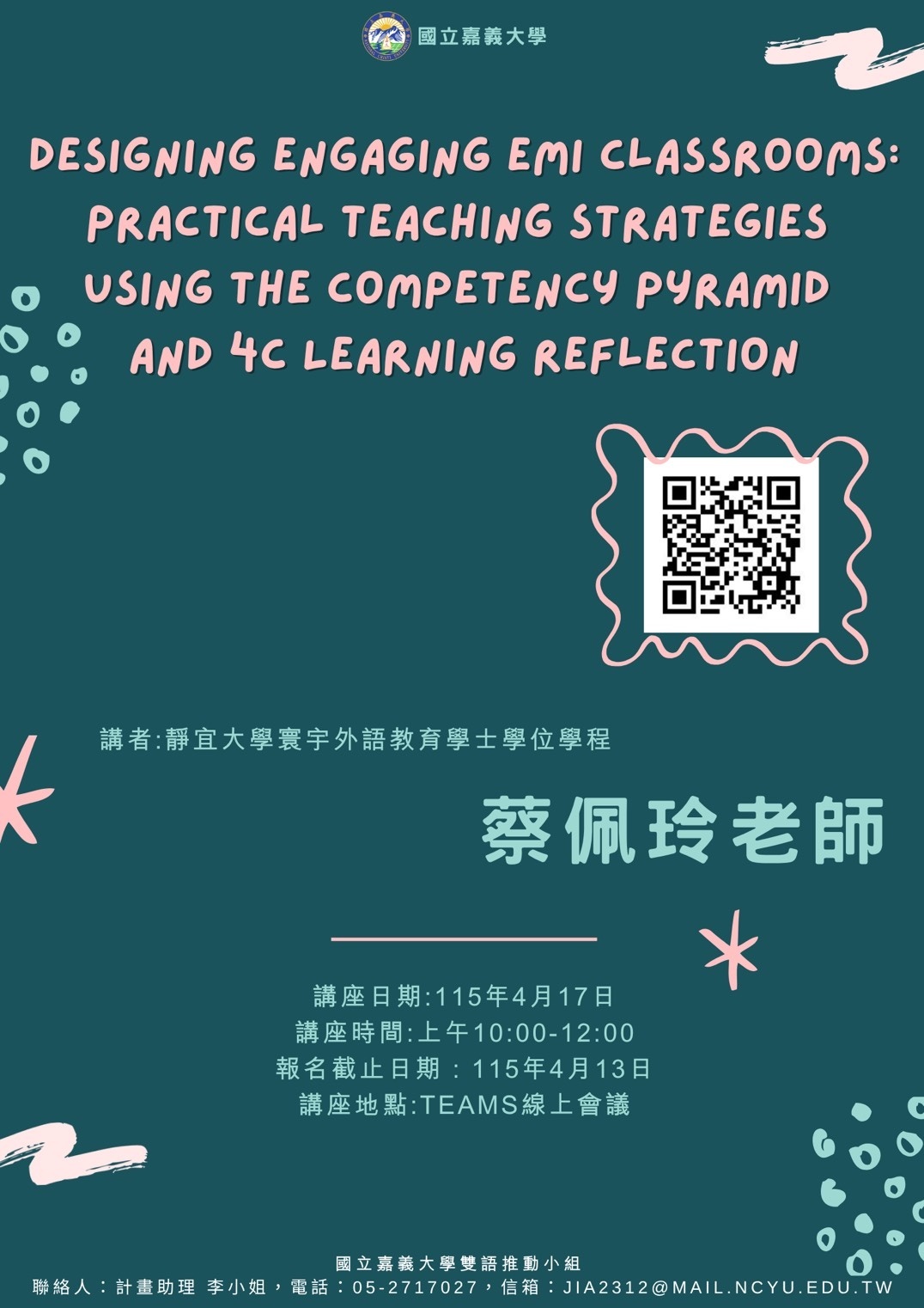 【EMI校外活動】115/4/17國立嘉義大學辦理「教師英語教學(EMI)研習」